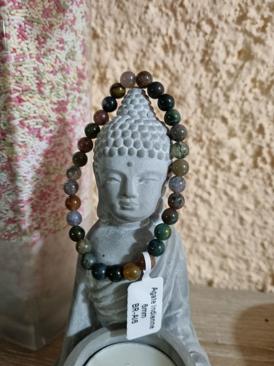 Bracelet Agate Indienne perles 6mm diamètre: 16 – 18 cm