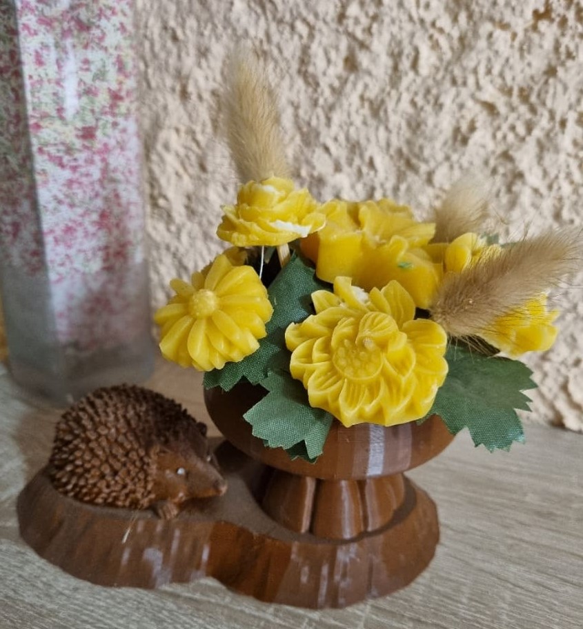 Offrez à vos invités une Composition floral avec hérisson et …Si vous voulez un parfum veuillez le signaler, ainsi que la couleur du hérisson ainsi que les fleurs.